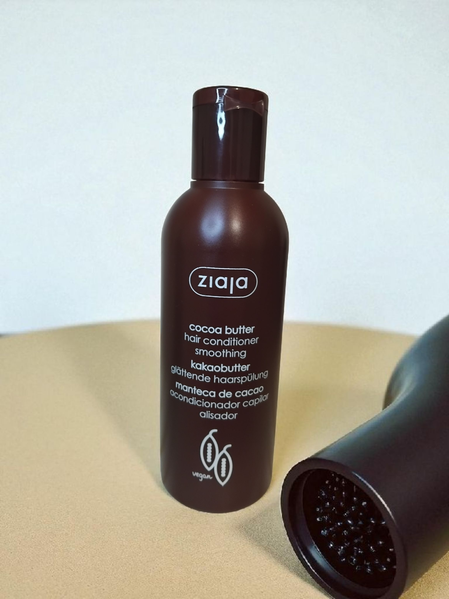 Composition: Aqua (Water), Cetearyl Alcohol, Cetrimonium Chloride, Dimethicone, Behentrimonium Chloride, Isopropyl Myristate, Theobroma Cacao (Cocoa) Seed Butter, Polyquaternium-10, Panthenol, Sodium Benzoate, Parfum (Fragrance), Citric Acid.